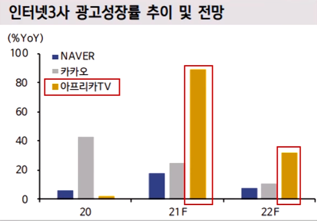 네이버와 카카오 등 대형 인터넷 플랫폼 기업과도 비교를 했을 때 2022년 또한 이 두 기업보다 광고 성장률이 더 높을 것이라는 전망을 합니다.